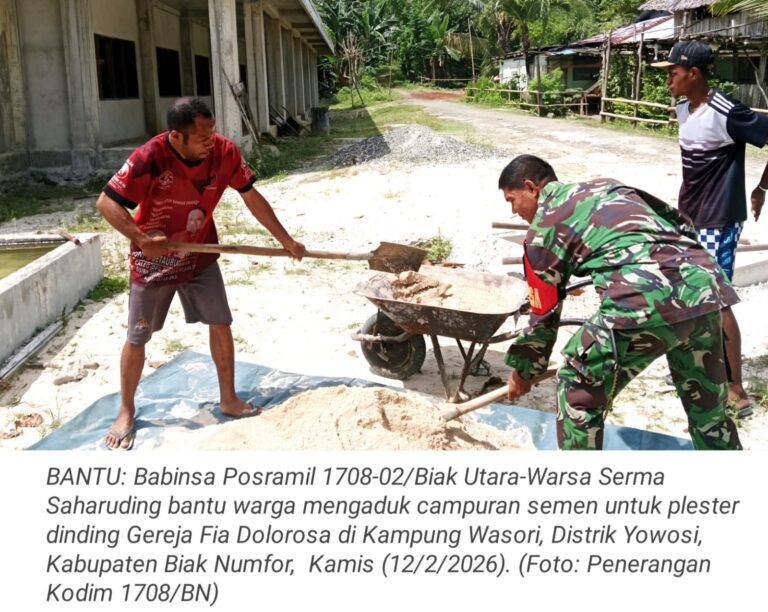 TOP-NEWS.id, WARSA - Kepedulian terhadap warga binaan kembali ditunjukkan Babinsa Posramil 1708-02/Biak Utara-Warsa Serma Saharuding membantu warga mengaduk campuran semen...