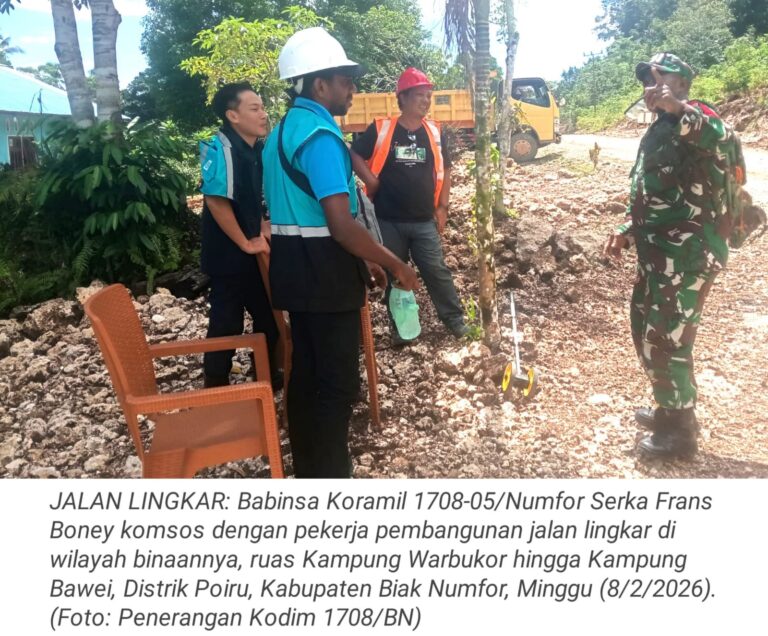 TOP-NEWS.id, NUMFOR - Babinsa Koramil 1708-05/Numfor Serka Frans Boney melaksanakan kegiatan komunikasi sosial (komsos) sekaligus memantau perkembangan pembangunan jalan lingkar...