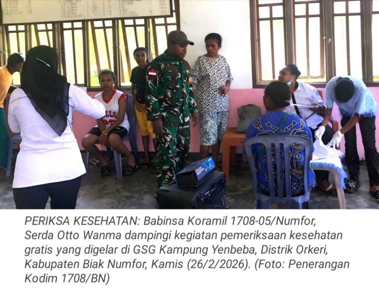 TOP-NEWS.id, NUMFOR - Komitmen TNI dalam mendukung peningkatan kualitas kesehatan masyarakat kembali diwujudkan melalui aksi nyata di wilayah pedesaan. Babinsa...