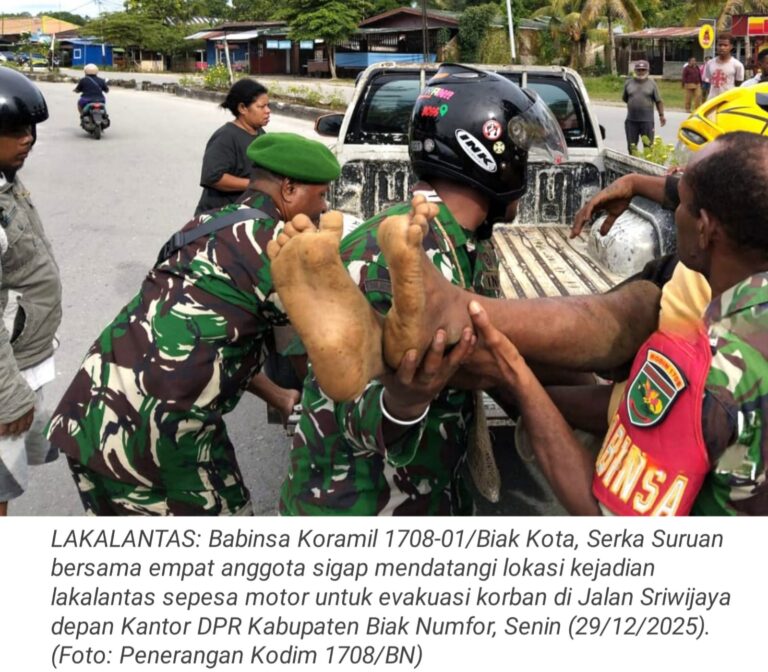 TOP-NEWS.id, BIAK - Babinsa Koramil 1708-01/Biak Kota, Serka Suruan bersama empat orang anggota bantu dengan sigap mendatangi lokasi kejadian kecelakaan...
