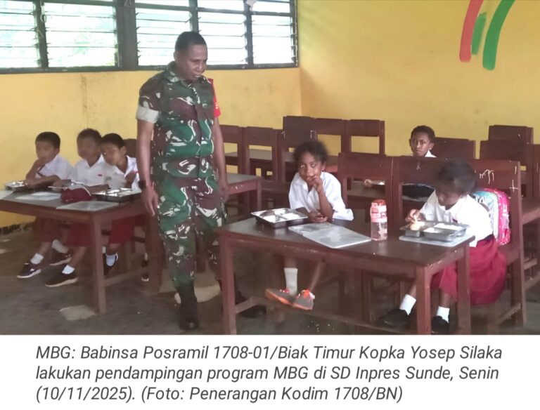TOP-NEWS.id, BIAK TIMUR - Upaya mendukung dan menyukseskan program pemerintah terkait pemenuhan gizi bagi anak usia sekolah, Babinsa Posramil 1708-01/Biak...
