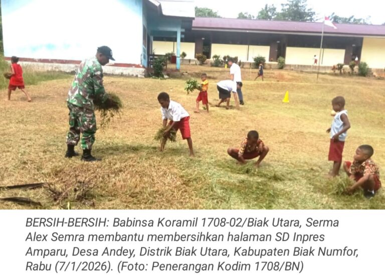 TOP-NEWS.id, BIAK UTARA - Wujud nyata kepedulian terhadap lingkungan dan dunia pendidikan kembali ditunjukkan oleh Babinsa Koramil 1708-02/Biak Utara, Serda...