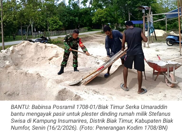 TOP-NEWS.id, BIAK TIMUR - Kepedulian aparat teritorial kembali terlihat di tengah masyarakat. Babinsa Posramil 1708-01/Biak Timur Serka Umaraddin membantu pembangunan...