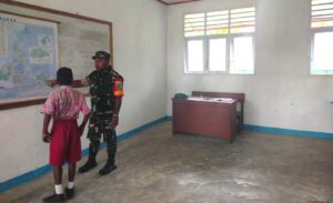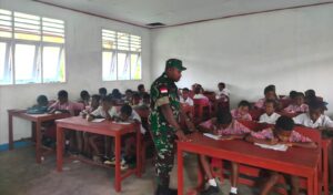 TOP-NEWS.id, NUMFOR – Dalam upaya membentuk karakter kebangsaan dan semangat cinta Tanah Air kepada generasi penerus, Babinsa Koramil 1708-05/Numfor Serda Oto Wanma memberikan materi wawasan kebangsaan (wasbang) kepada murid SD YPK Yenbeba, Kampung Yenbeba, Distrik Orkeri, Kabupaten Biak Numfor, Papua, Rabu (6/11/2024).