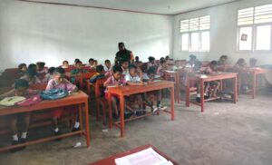 Selain materi tentang wasbang, Serda Oto juga mengajarkan murid-murid SD YPK Yenbeba mengenai peta Indonesia. Dirinya juga memperkenalkan peta sebagai alat untuk memahami luas dan keragaman Indonesia.