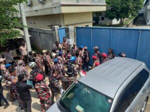 TOP-NEWS.id, KABUPATEN SERANG – Ratusan massa dari organisasi masyarakat (ormas) Laskar Merah Putih (LMP), melakukan aksi demo di depan PT Suggo Metal Cemerlang. Jalan Raya Cikande Rangkas Bitung, Desa Cemplang, Kecamatan Jawilan, Kabupaten Serang, Provinsi Banten, Kamis (4/8/2022).