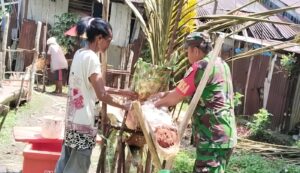Kegiatan yang dilakukan Babinsa mendapat apresiasi dari Maria Mnusever selaku pemilik sagu.