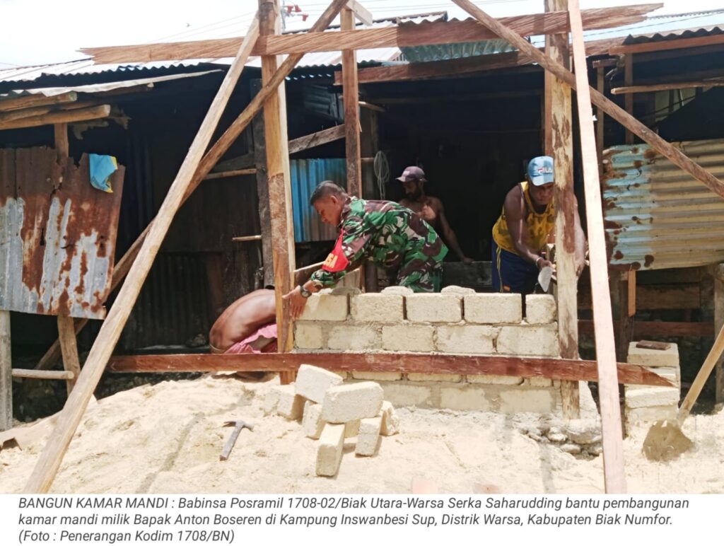 TOP-NEWS.id, WARSA – Kepedulian terhadap warga binaan kembali ditunjukkan Babinsa Posramil 1708-02/Biak Utara-Warsa Serka Saharudding dengan membantu pembangunan kamar mandi milik Bapak Anton Boseren di Kampung Inswanbesi Sup, Distrik Warsa, Kabupaten Biak Numfor, Senin (9/3/2026).