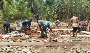 TNI Peduli, Babinsa Bantu Pembuatan Pondasi Rumah Warga Binaan