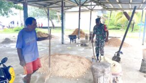 TOP-NEWS.id, BIAK TIMUR – Kepedulian terhadap warga binaan terus ditunjukkan Babinsa Posramil 1708-01/Biak Timur Serka F. Sombuk dengan turun langsung membantu pembuatan batu tela milik Yafet Kurni dan Yoseph Morin di Kampung Inovi, Distrik Biak Timur, Kabupaten Biak Numfor, Papua, Sabtu (7/2/2026).
