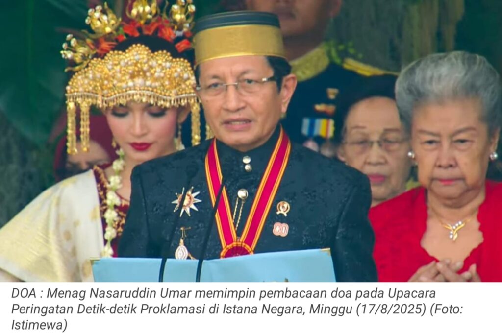TOP-NEWS.id, JAKARTA – Menteri Agama Nasaruddin Umar memanjatkan doa khusus bagi bangsa Indonesia, pada saat upacara peringatan Detik-detik Proklamasi Kemerdekaan Republik Indonesia ke-80 di Istana Merdeka, Jakarta, Minggu (17/8/2025).