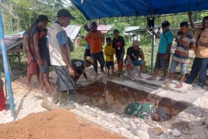 Wujud Kebersamaan, Babinsa Biak Utara Bantu Warga Gali Liang Kubur