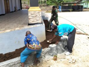 Wujud Kebersamaan, Babinsa dan Warga Percantik Gereja Musa Nermnu