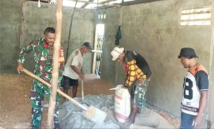 Kegiatan tersebut, merupakan wujud nyata kepedulian Babinsa terhadap kesulitan masyarakat di wilayah binaannya. Dengan penuh semangat dan kebersamaan, Kopda Beni Nap turun langsung membantu proses pembangunan, mulai dari mengaduk semen, mengangkat pasir dan batu, serta memindahkan material hingga membantu pemasangan rangka dan dinding rumah.
