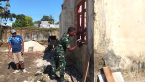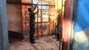 Sertu Andreas Pariaribo ikut renovasi rumah warga binaan. (Foto: Penerangan Kodim 1708/BN)
