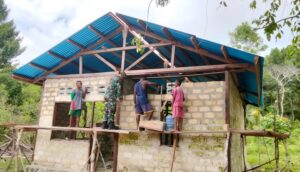 Dalam kegiatan tersebut, Serka Sampurno ikut terjun langsung membantu pemasangan batu tela di rumah milik Ruslan Rumbiak, salah satu warga kampung binaannya. Kebersamaan inilah yang menjadi bagian dari tugas pokok seorang Babinsa membangun kedekatan dan hubungan yang harmonis dengan masyarakat.